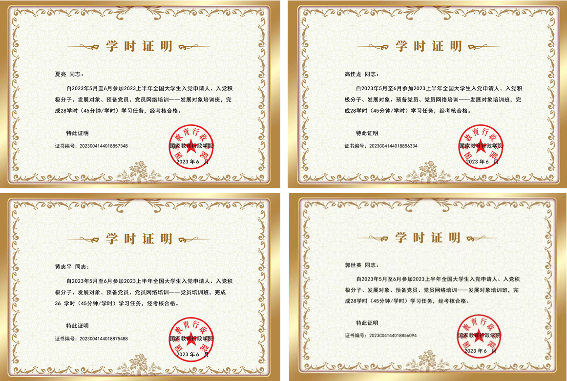在三周学习时段内,参训学员按照学校统一下发的“学习卡”,借助“大学生网络党校”,线上开展了课程学习、主题研讨、撰写思想汇报、在线考试四个环节的学习,在规定时间内,54名发展对象学员取得了培训合格证书,8名教师新党员取得了新党员培训合格证书,本期网上党校培训取得圆满成功。