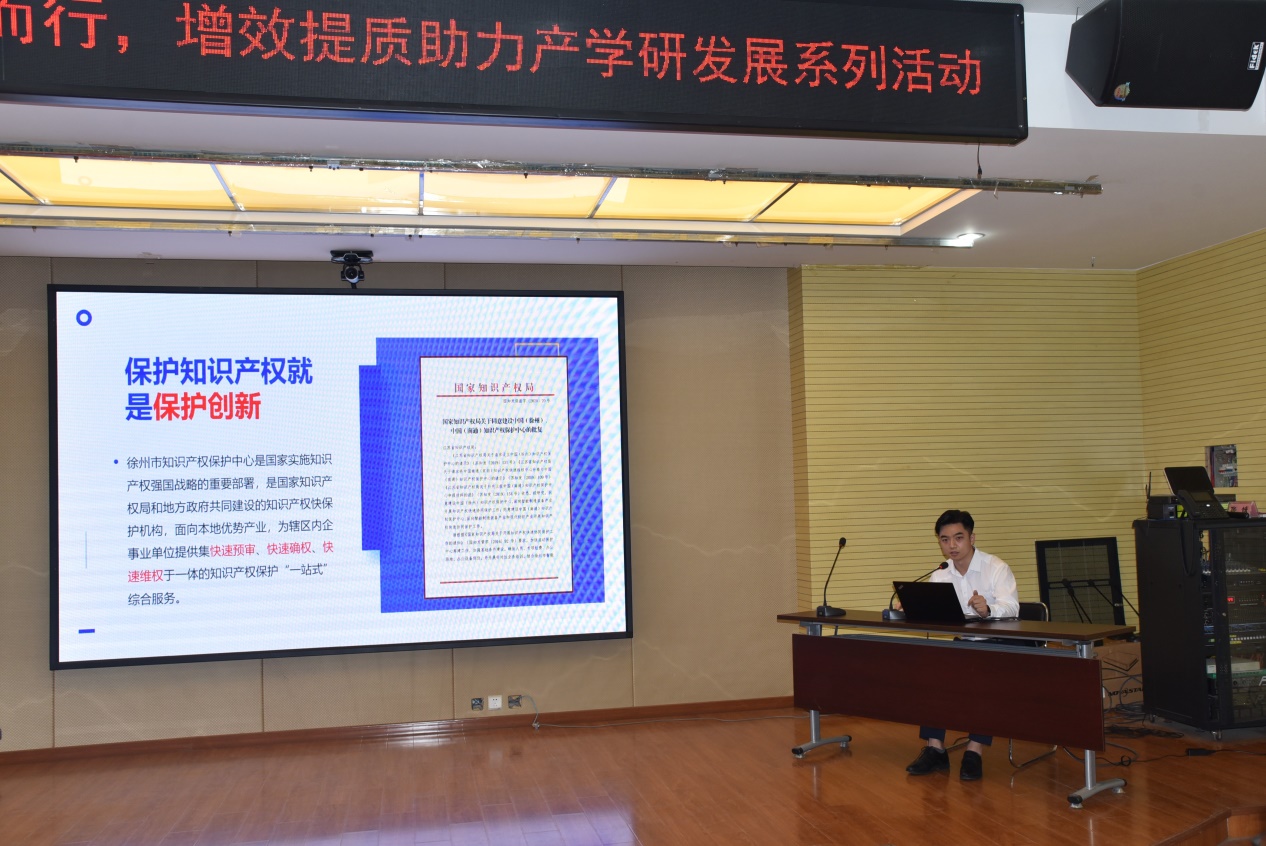 创新是引领发展的第一动力,保护知识产权就是保护创新。为深入贯彻落实习近平总书记关于知识产权工作的重要指示重要论述精神,加快知识产权强建设,9月24日上午,由徐州市知识产权保护中心指导、泉山区知识产权局主办、我校承办的知识产权申报专题讲座在泉山校区视频会议室举办。学校党委委员、副校长强承魁二级学院分管副院长、教师代表等五十教师参加会议会议由科研处处长史先振主持。