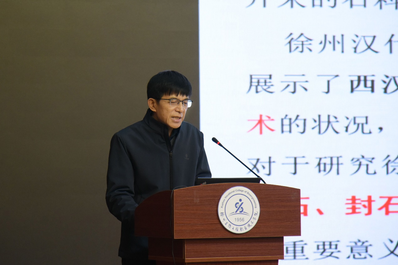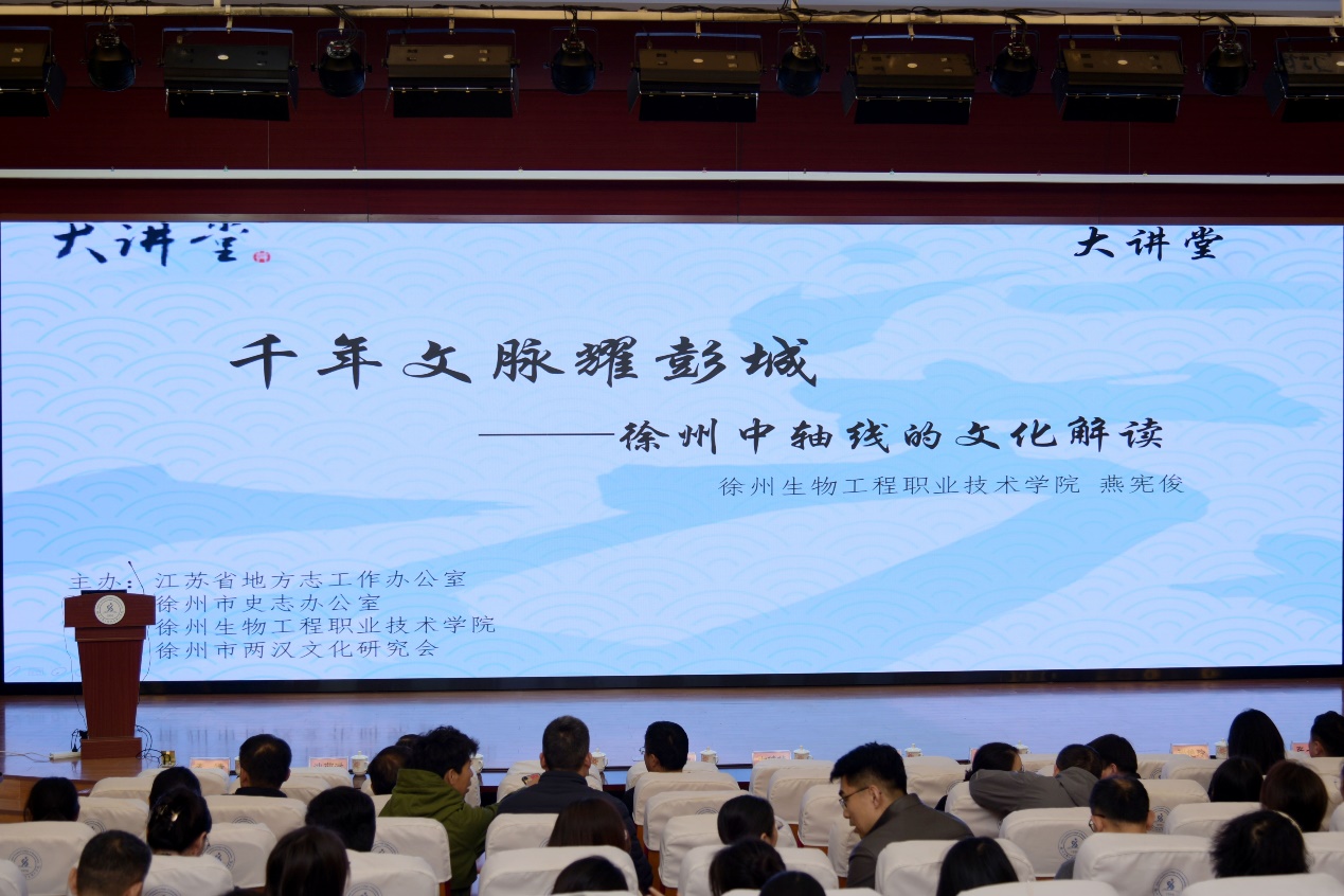 徐锋在致辞中代表学校,向与会领导和专家介绍了我校将中华优秀传统文化融入“治人文、精技术”教育教学改革中的传承与创新,并对省方志办、市史志办对学校文化育人工作的支持表示感谢。他指出,地方志作为“一方之全史”,是中华优秀传统文化的重要组成部分,蕴含着丰富的历史信息和深厚的文化底蕴,徐州生物工程职业技术学院将继续加强与地方志工作机构的交流合作,积极开展方志及地方文化研究,通过方志大讲堂这一平台,让广大师生从历史与现实的多维度去认知家乡、热爱家乡、建设家乡。